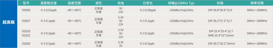 为满足复杂通信应用场景对晶振的需求,在能够提供高精准频率基础上,赛思研制了具有5E-11业内同级别最高的的温度稳定性、秒稳优于5E-12性能的超高稳OCXO O3627和至高支持-55℃~+85℃宽温、高性价比的系列晶振产品。同时,对于守时精度要求较高的场景,赛思时钟模块产品最高可支持1.5us@24小时的保持能力供用户选择。